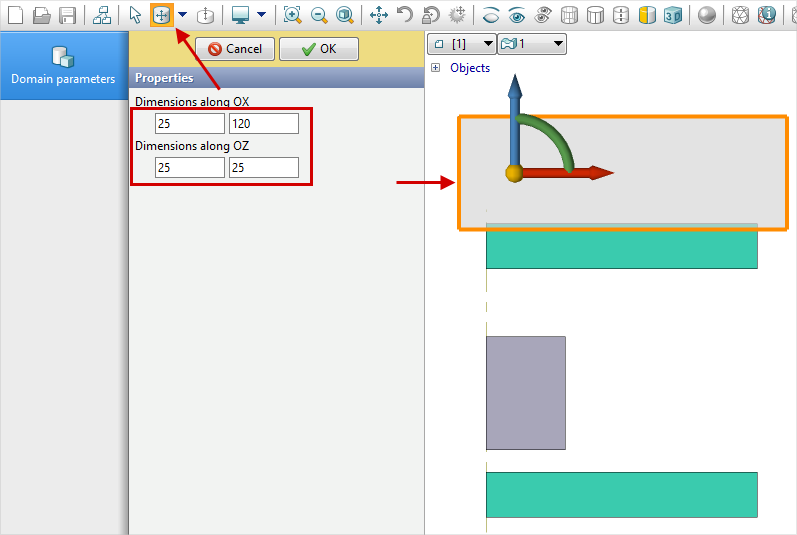 Enter the domain size along the OX and OZ axes , then help the button