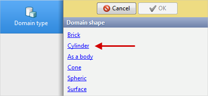 Select the domain shape. Click Cylinder