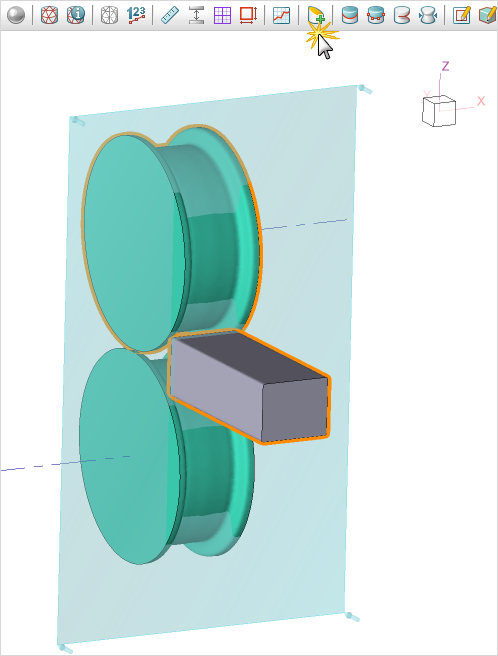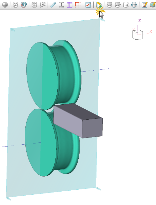 Workpiece selected. The section plane passes through the center of the area encompassing the Workpiece.