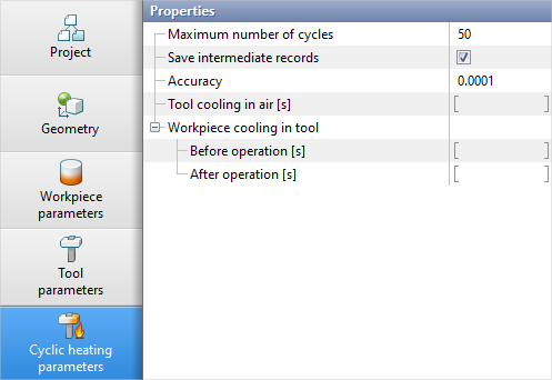 •Tool cooling in air [s] – cooling the tool in air before each cycle.
