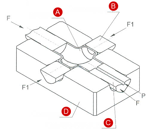 The principle of hydroforming is that the pipe is placed in the cavity of the die, the configuration of which corresponds to the configuration of the part being formed. Dies, which are generally split longitudinally, are closed when the press slide starts moving.