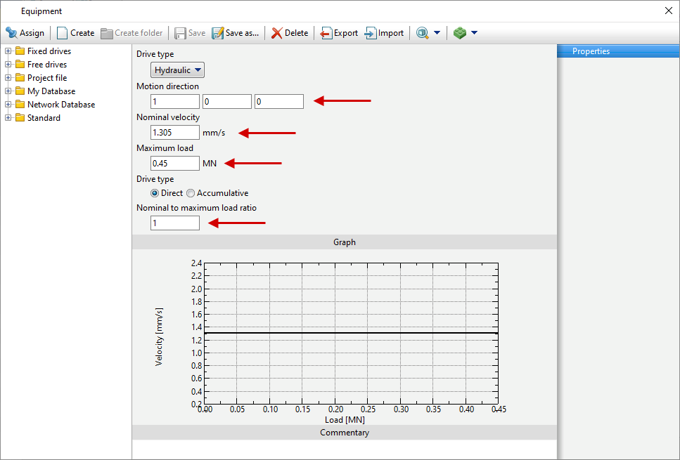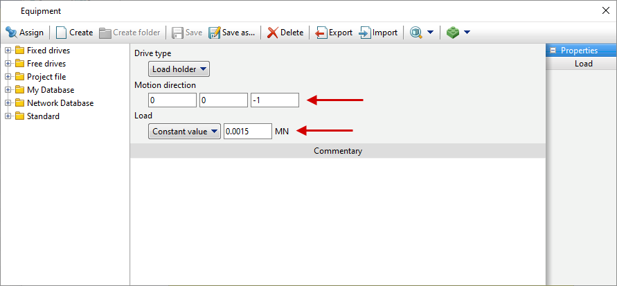 After that, click Save as... and set a name for the new equipment, for example, holder 1.5 kN.In the database directory Project file the created equipment will appear, double click on it, after that the selected drive will appear next to Drive-Tool 3.