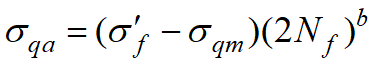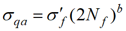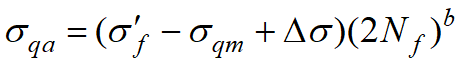 When this parameter is activated, an additional parameter will appear in the formula for simulation the mean stressΔσ (cycle stress amplitude) which allows you to take into account cyclic hardening or softenning. Then, with correction enabled Morrow formula will take the view: