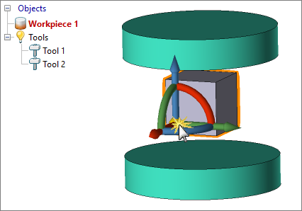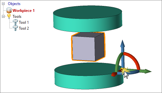 Positioning of workpieces, tools, and clipping surface (body contours) is possible only at the stage of preparing the initial data - at the zero step of simulation. Boundary condition domains and additional adaptation areas can be positioned at any simulation step. |