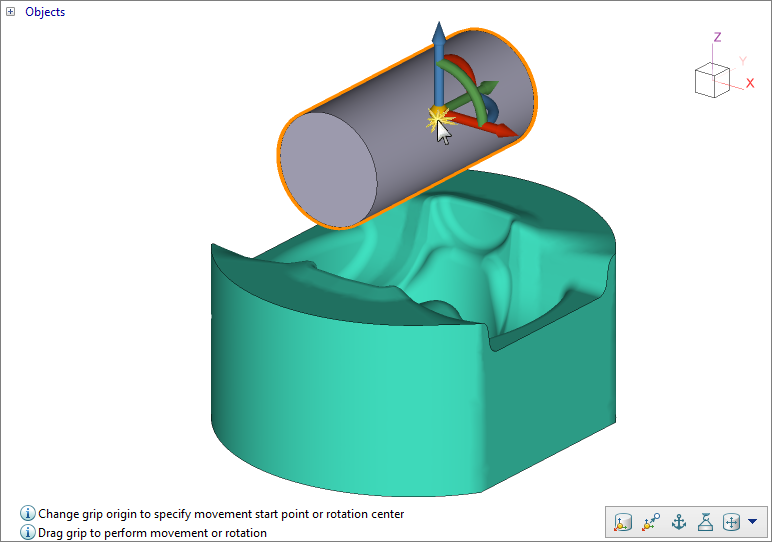 Displacement an object by specifying the start and final position of the gripSelect the object and position the grip's center as needed: