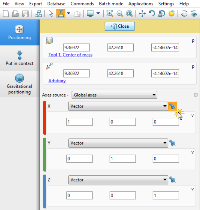 Then click on the button Pick grip end and position the center of the grip as needed: