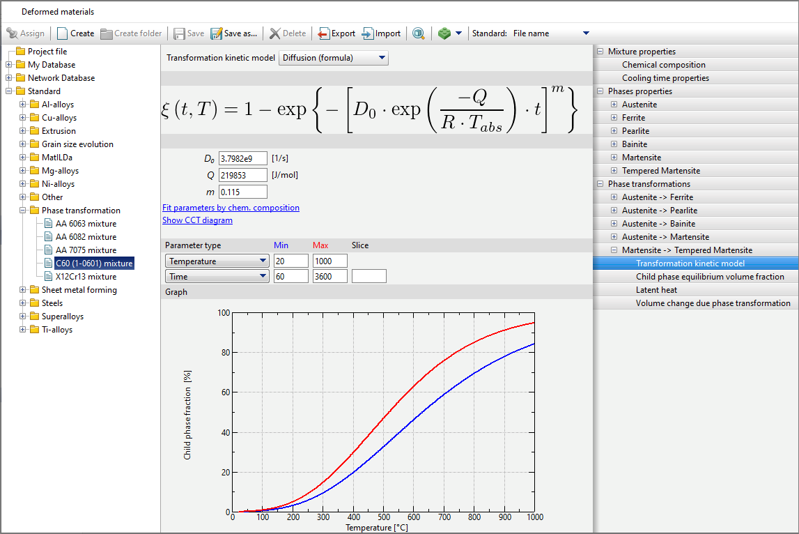 QForm UK allows both diffusive and martensitic phase transformations to be simulated using different models.