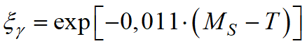 where ξγ - volume fraction of residual austenite; MS - temperature of the beginning of martensitic transformation. This formula is valid for carbon steels when MS> T > -80°C.