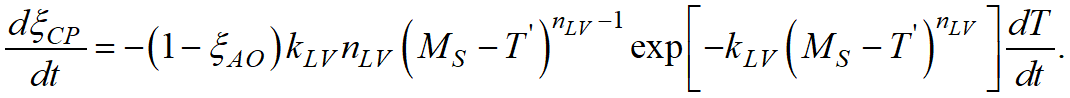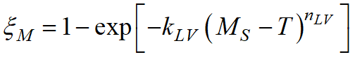 To take this feature into account in the Koistinen-Marburger and Lee – Van Tyne models, the corrected value of temperatureT'should be substituted instead of temperatureT: