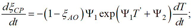 takes into account the presence of other phase transformations (CP - child phase; MP - mother phase) and possible thermodynamic constraints on the equilibrium volume fraction of the child phase. At that, if T > T1, the transformation does not proceed.