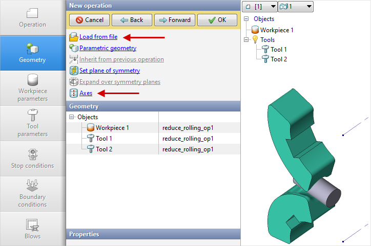 15.In the Geometry tab click Load from file and specify the path to the geometry file reduce_rolling_op2.shl.