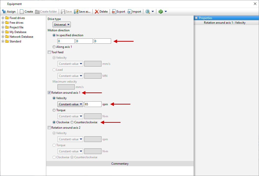 In the database directory Project file the created equipment will appear, double click on it, after that the selected drive will appear opposite Drive- Tool 1.