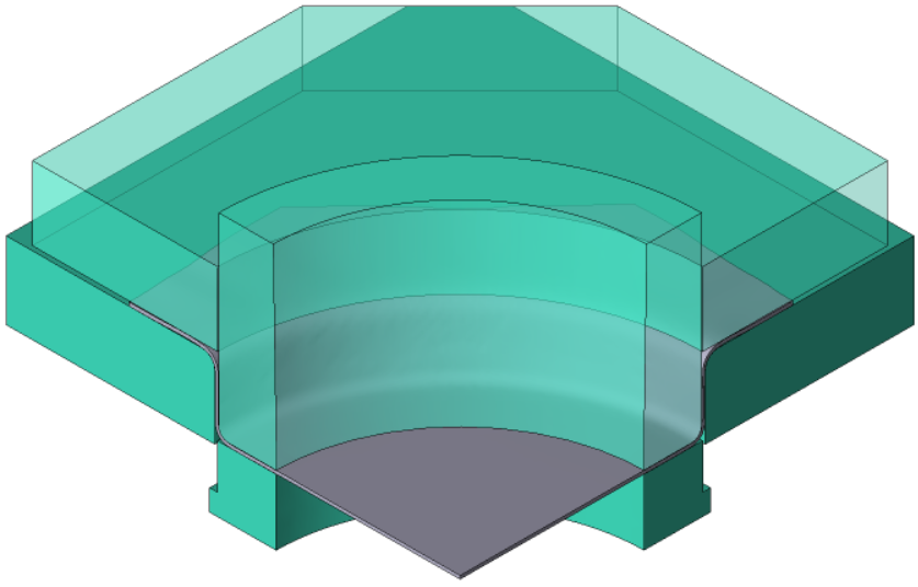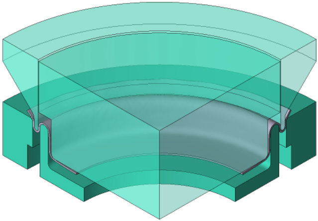 The simulation of sheet metal forming operations is examined below using the example of the cold drawing process of a part.