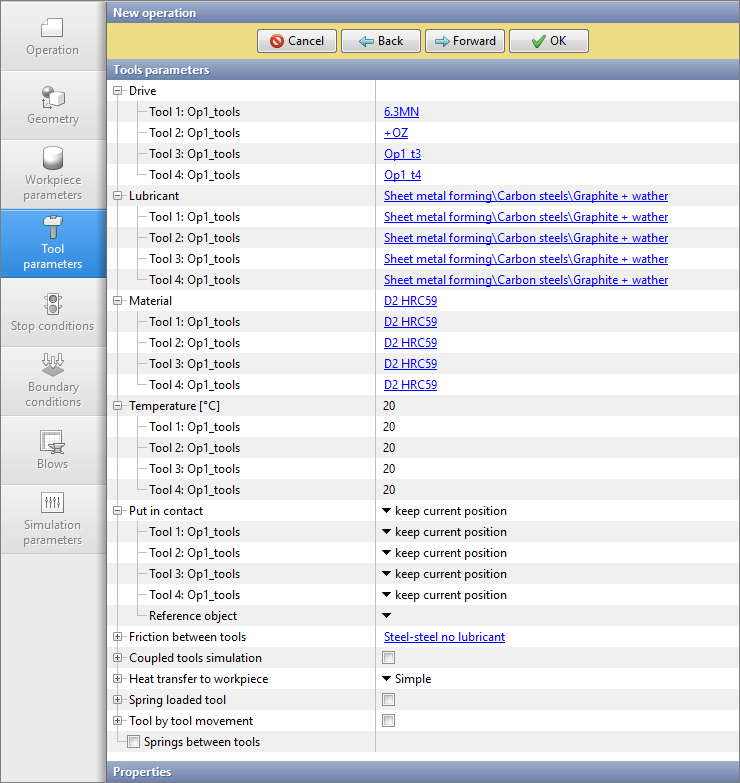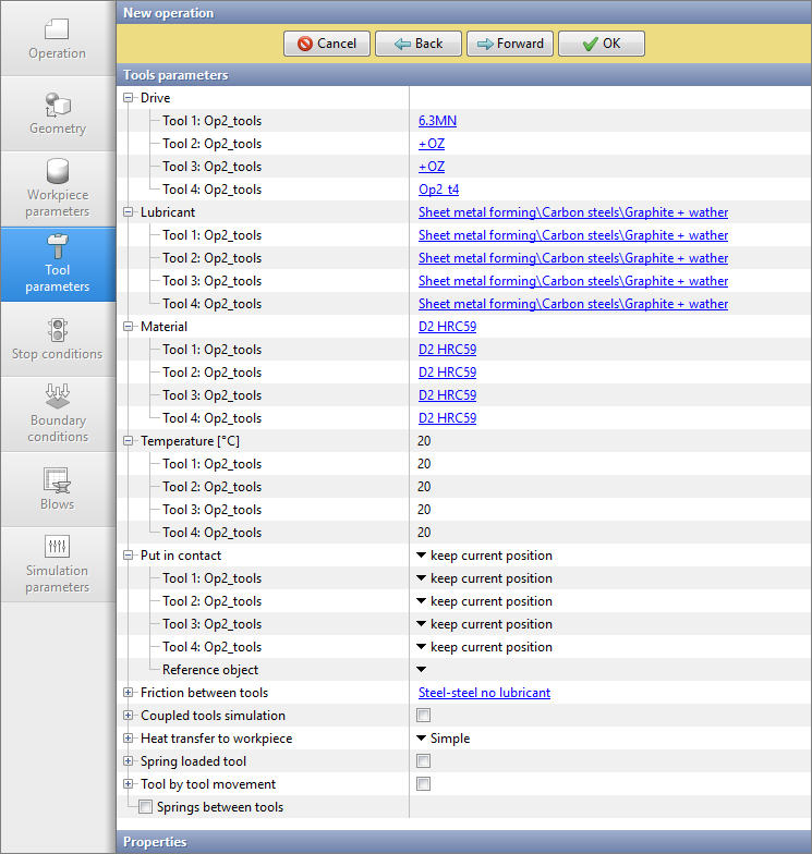 In this example, the process of cold forming is considered, so the workpiece temperature, as well as other parameters in this tab, do not need to be changed. Click Forward.