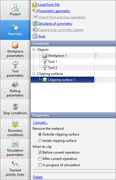 •For cutting workpiece at the end of an operation, it is enough to set the length of the cut workpiece with or without an offset; •You do not need to restart the simulation from the beginning to account for clipping during the simulation. To do this, activate the clipping option and recalculate the simulation from the previous step. |