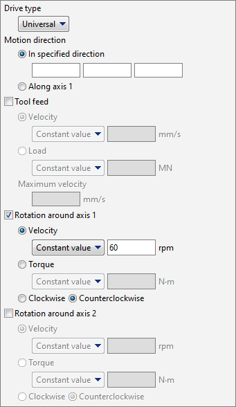 •For each number of revolutions per minute it is necessary to create separate drive type Universal. The direction of rotation of the rolls is determined by the user. |