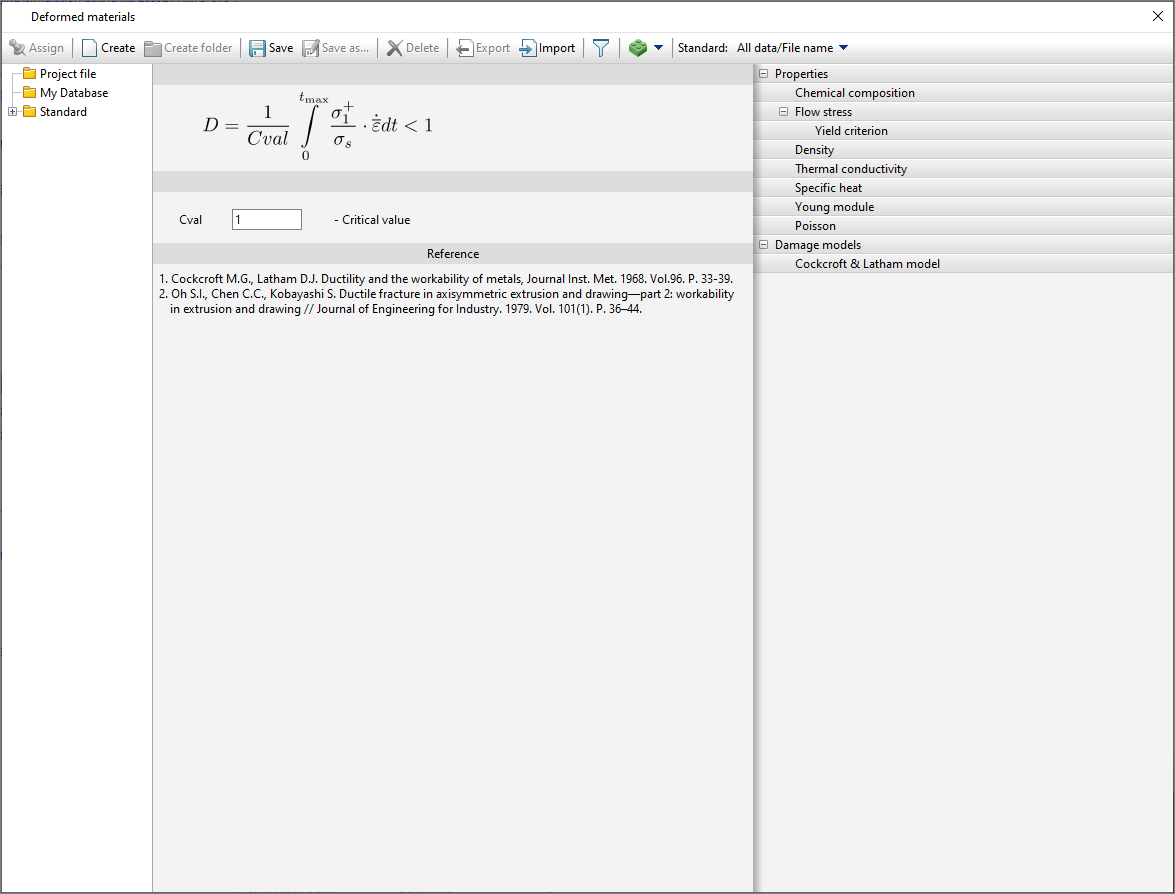 This model represents a material failure criterion based on the accumulation of plastic strain and taking into account the maximum principal stress. It was proposed by Cockcroft and Latham and is widely used to predict metal failure during plastic deformation.