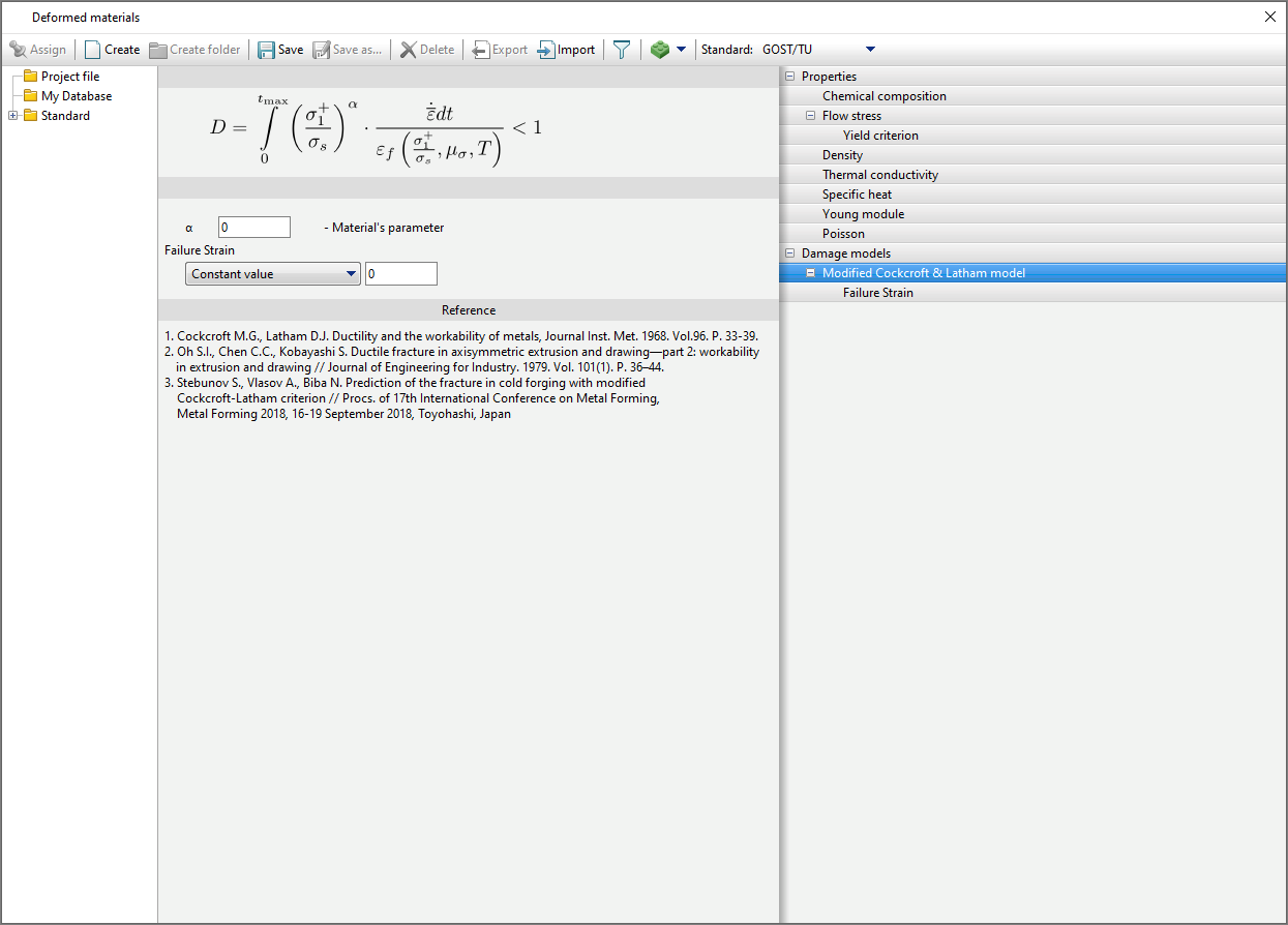The modified Cockcroft-Latham damage model represents an enhancement of the original criterion, incorporating additional factors influencing the material failure process during plastic deformation. Unlike the basic model, the modified approach may incorporate parameters such as temperature effects, strain rate, and material anisotropy into the calculations.