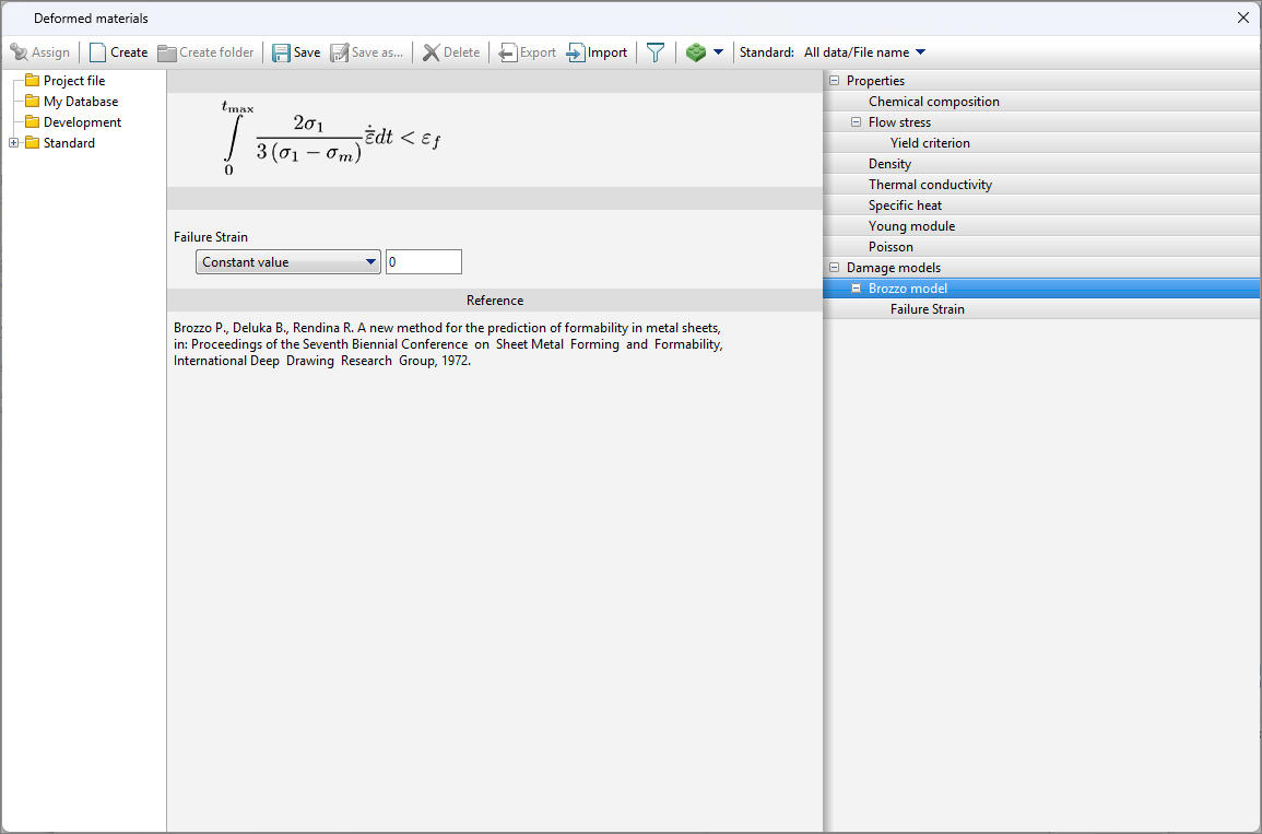 The Brozzo model belongs to the class of local failure criteria used to describe the onset of damage under complex stress conditions. In this model, the failure criterion is reaching a certain limit of accumulated plastic strain, modified to account for the stress state shape.