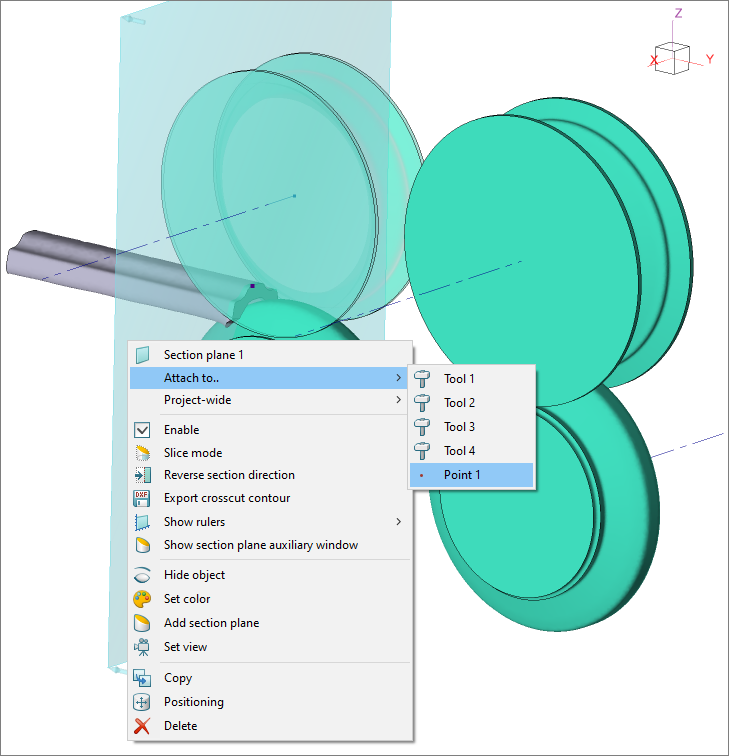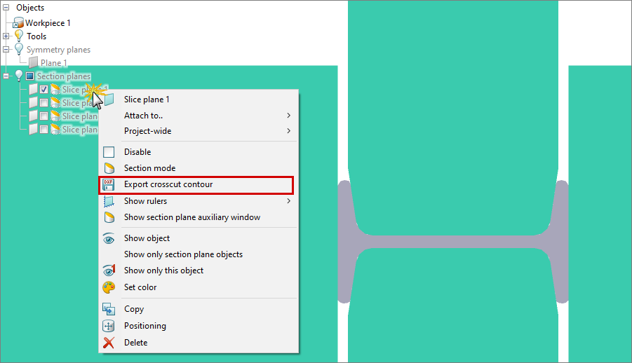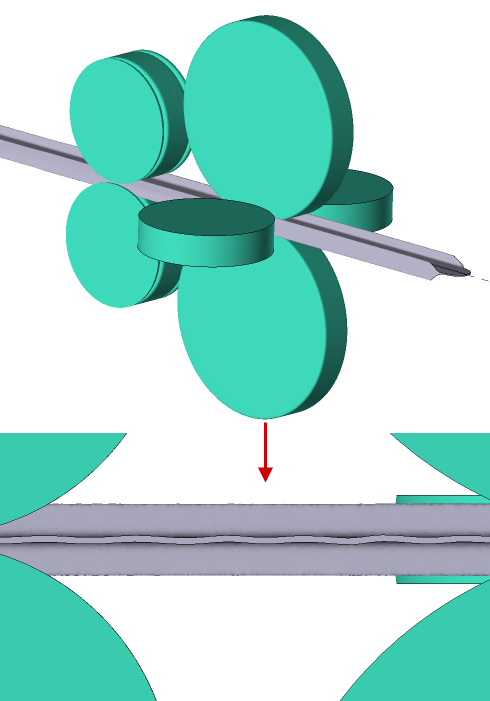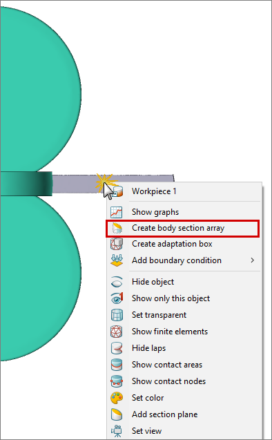 Automatic creation of a section arrayA distinctive feature of the rolling modules is the automatic creation of a section array. Select the workpiece and do right-click to open the dialog window. Then choose Create body section array. Section planes passing through the axes of all roll pairs are generated automatically. Groove filling analysisTo analyze the filling of a specific groove, activate the corresponding section plane. Using the standard set of tools in QForm UK, it is possible to measure the resulting section. The section contour can also be exported in DXF format. Feedstock bite analysisIn longitudinal rolling the feedstock bite by the rolls must be monitored; QForm UKprovides a Dynamic section plane for this purpose. To assess the strip bite, perform the following steps: 1. Create a section plane perpendicular to the rolling direction; 2. Position the section plane near the front end of the workpiece; 3. Add a tracking point on the workpiece; 4. Right-click the section plane, choose Attach to …, and select the created point; 5. Execute Tracking. You can attach the section plane to an already tracked point or attach it first and then run tracking. After tracking, the section plane will follow the movement of the tracked point. To analyse the bite, activate the section plane and set the simulation step at which the workpiece first contacts the rolls. |