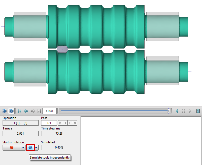 All standard result-analysis tools (see the Results output section) are available for the Longitudinal rolling module. This section introduces specialized analysis tools, shows examples of defects in longitudinal rolling processes, and explains how to detect them.