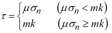 The next three laws are the most common ones: 1.Coulomb law according to which the specific friction force τ is proportional to contact pressure σn with proportionality coefficient called the friction coefficient μ,