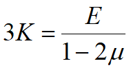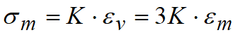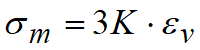 E - elasticity modulus (Young's modulus), and μ - Poisson coefficient are the material properties. Volumetric strain is related to mean stress with the relation: