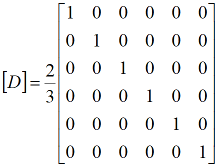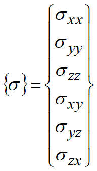 Generalized Hooke's law can be written down relatively to components of stress and strain tensors. In finite element method the following matrix formulation of constitutive equations of elastic continuum is used: