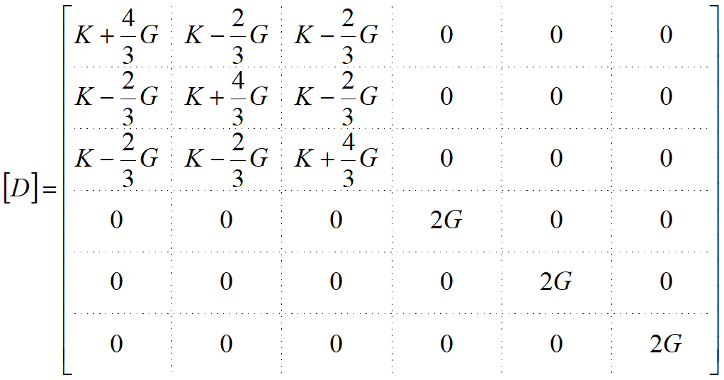 Hencky's equation can be written relatively to stress and strain tensor components. Finite element method implements the following matrix formulation: