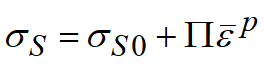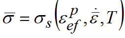 σm - mean stress. According to Mises plasticity condition the stress is equal to flow stress that depends on effective (cumulative) plastic strain, strain rate and temperature.