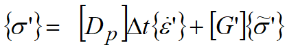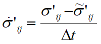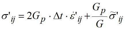 Thus, the strain rate deviator depends both on stress deviator and its derivative with time. When using this equation in QForm UK for formulation of FEM resulting equation it is preliminary transformed by means of linear approximation of stress deviator derivative