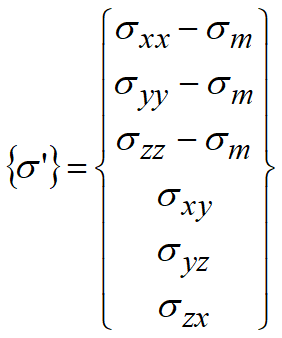 Levy–Mises equations interrelate the deformation rates and the stress deviator σ'. The finite element method uses the matrix representation of Levy–Mises constitutive equations: