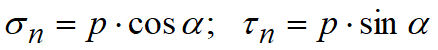 In order to determine the stress vector in a surface element passing through the body material point М the body is divided with an imaginary surface passing through the point М into two parts. One part is mentally rejected, and its influence on the rest part is substituted with a system of internal forces. Allow a small area of this section be influenced by the internal force ΔΡ. Generally the direction of force action does not coincide with the direction of plane normal n.