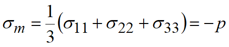 Stress σm that is equal to one third of the sum of stresses located on the main diagonal of stress tensor is called the mean (average) stress (average normal stress), and the quantity p that is equal to it in value but opposite in sign is called the hydrostatic pressure.