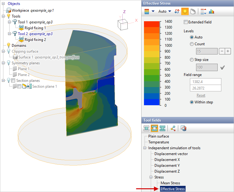 , and in the tab Tool fields the calculated fields will be displayed. Activate, for example, Effective stress: