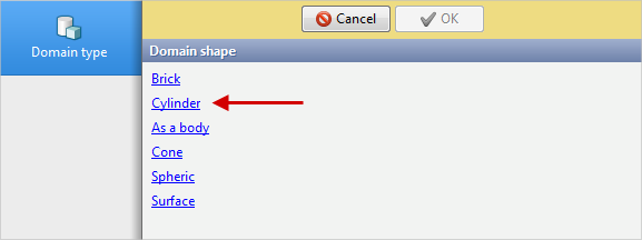 Enter the dimensions of the cylinder domain manually or using the tool Dimensions alteration mode