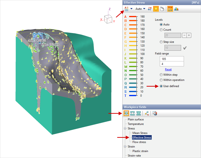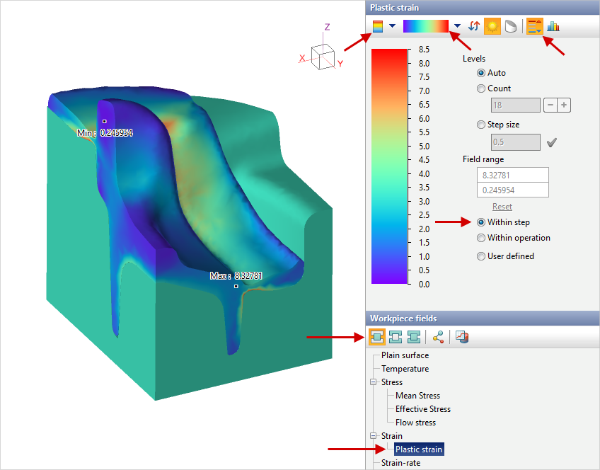 By means of Scale panel the display parameters of the fields and the scale range can be changed: