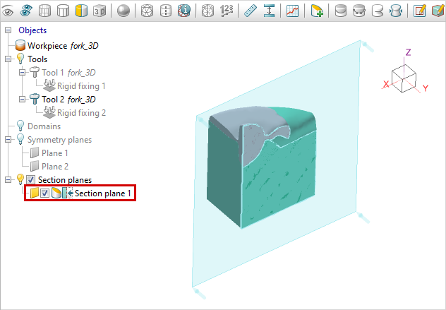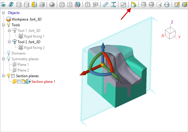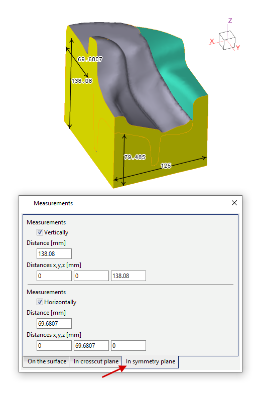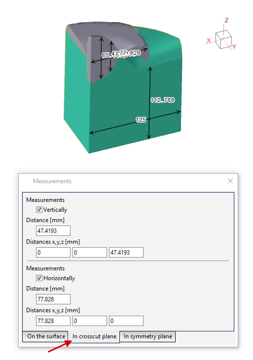 The section plane is added with the button Add section plane The objects measurements window is opened with the button Measure See also: |